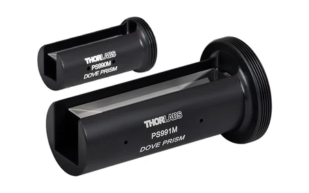 Оправленные призмы Дове Thorlabs из N-BK7 поворачивают/инвертируют/ретроотражают изображение и выпускаются в корпусах с внешней резьбой SM05, SM1 или SM2; с поворотными держателями SM-серии можно непрерывно вращать изображение на 360°, а открытая длинная грань позволяет ретроотражение. Корпуса из анодированного алюминия имеют пазы под ключи-спаннеры для установки в тубусы Ø1/2″, Ø1″ или Ø2″ (с фиксирующим кольцом); призма имеет квадратное сечение, версия 15 мм доступна без покрытия или с двумя вариантами AR.