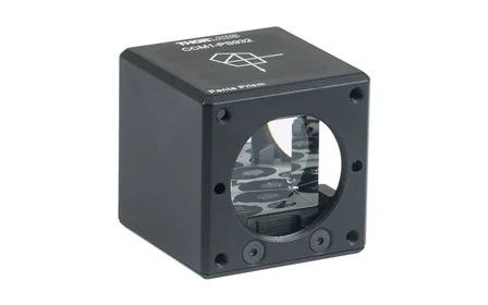 Пентапризма отклоняет свет на 90° без инверсии/зеркального разворота изображения и без изменения поляризации, причём угол почти не зависит от ориентации призмы, поэтому она может заменять поворотные зеркала (ограничение — апертура корпуса >Ø12 мм). Оправленная пентапризма Thorlabs из N-BK7 имеет две алюминированные отражающие грани с защитным покрытием Inconel и чёрной краской и установлена в куб 30-мм cage-системы; призма вклеена и несъёмная, выход пучка 90° ± 20′.